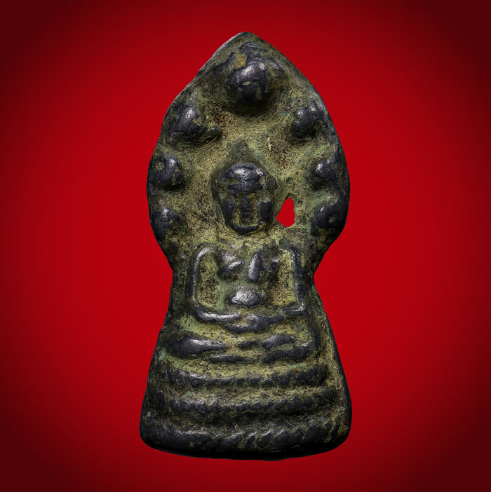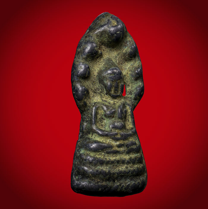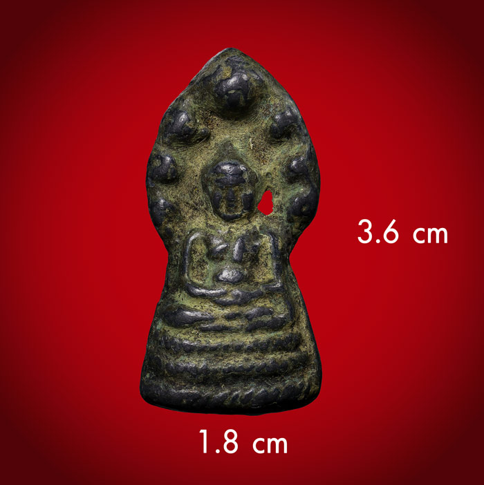 รายละเอียด พระนาคปรก เนื้อชินสนิมเขียว(ไม่ทราบที่) ขนาดพระฐาน 1.8 cm สูง 3.6 cm