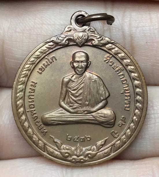 เหรียญที่ระลึกอายุครบ 82 ปี หลวงพ่อเกษม เขมโก จ. ลำปาง รุ่น สิริมงคล ปี 2536 เนื้อทองแดง ห่วงเดิม |