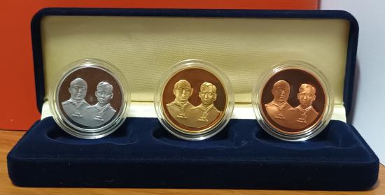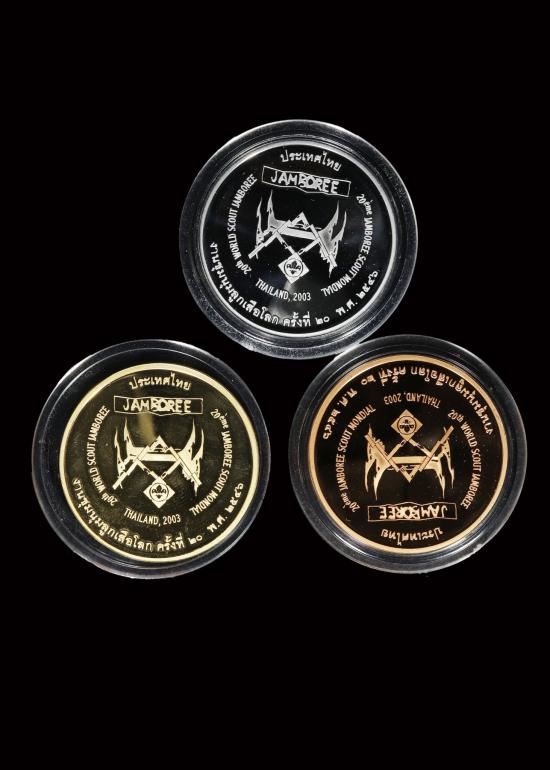 *เคาะเดียว ชุด 3 เหรียญ* เหรียญร.6-ร.9 ที่ระลึกงานชุมนุมลูกเสือโลกครั้งที่ 20 ปี2546 (((เนื้อเงิน + ทองชุบ + ทองแดง ขัดเงา))) มีกล่อง