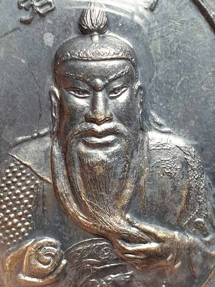 เหรียญเทพเจ้ากวนอู ((เนื้อเงิน)) ไม่ทราบที่ เลี่ยมกันน้ำพร้อมใช้ เคาะเดียวแดง 600 |