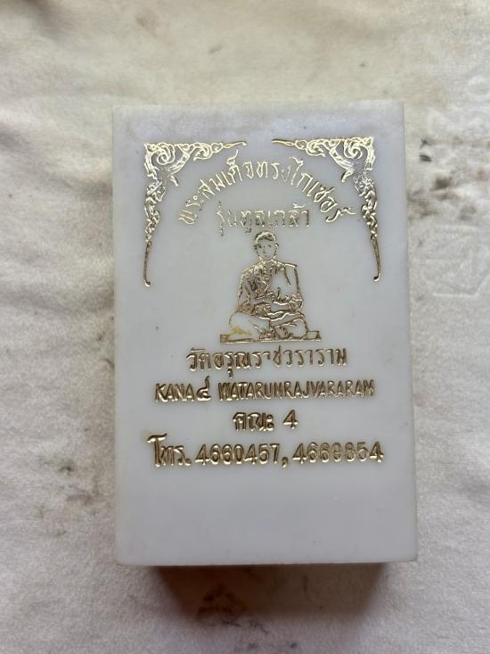 พระสมเด็จทรงไกเซอร์ รุ่นทูลเกล้า พิมพ์ใหญ่ วัดอรุณฯ พระสมเด็จไกเซอร์รุ่นแรก ปี 2529 มีส่วนผสมมวลสารของหลวงพ่อหลวงปู่ต่างๆอาทิเช่นหลวงปู่ภู หลวงพ่อพรหม หลวงพ่อลี ผงจากหลวงพ่อโสธร ผงเก่าจากวัดประสาทปี 06 ดินจากสังเวชนียสถาน และวัตถุต่างๆอันเป็นมงคลที่รวบรวมกันมาจากทั่วประเทศ พิธีปลุกเสกยิ่งใหญ่ รวมเกจิคณาจารย์ระดับแนวหน้าร่วมพิธี คับคั่ง องค์นี้ ด้านหลังฝังพลอยสี ปั็มยันต์