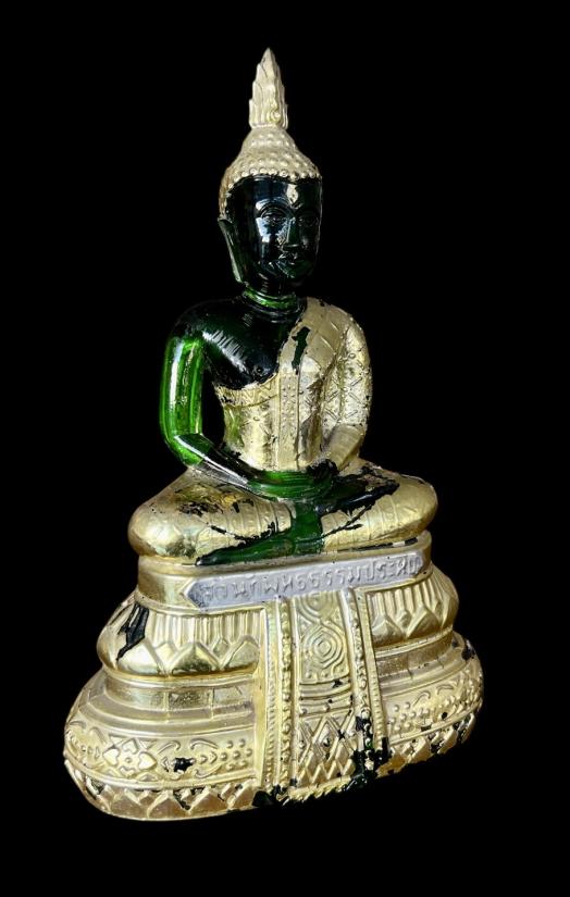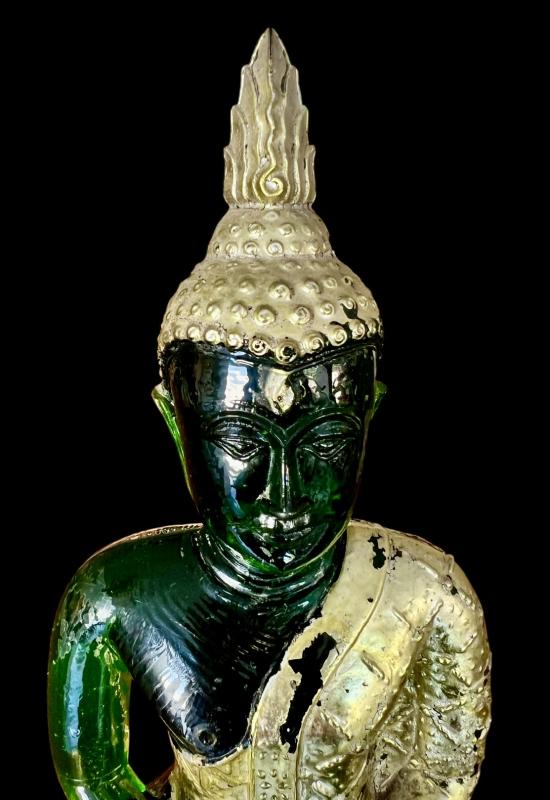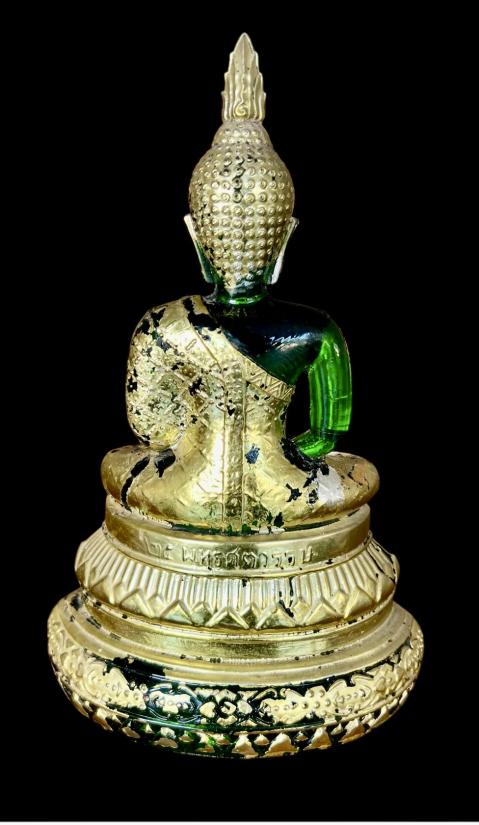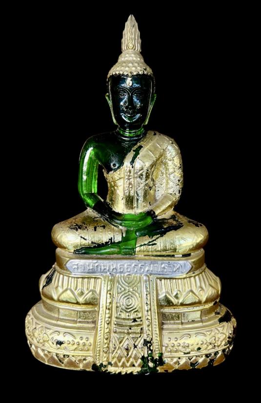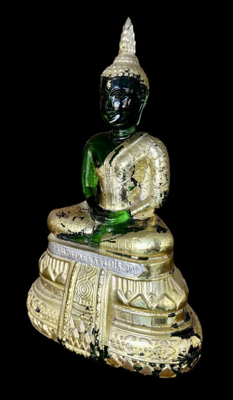พระแก้วพิธี 25 พุทธศตวรรษ พุทธาภิเษกวัดประสาทบุญญวาส สามเสน กรุงเทพฯ สำนักพุทธธรรมประทีป เนื้อแก้วสีเขียวกระไหล่ทอง สภาพสวยสมบูรณ์ ขนาดหน้าตัก 5 นิ้ว |