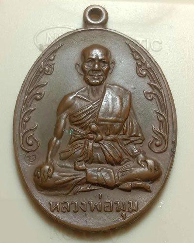 วัดใจ....เหรียญนักกล้าม หลวงพ่อมุม วัดปราสาทเยอร์ เนื้อทองแดง ปี2517 บล๊อคประคตสั้น