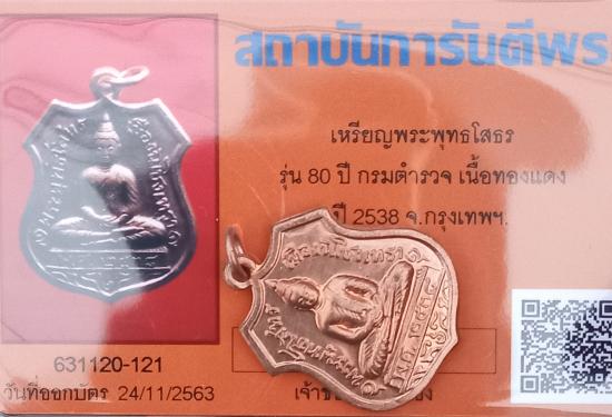 เคาะเดียวแดง++เหรียญหลวงพ่อโสธร กรมตำรวจ เนื้อทองแดงผิวไฟ พร้อมบัตรรับรองพระแท้ครับ