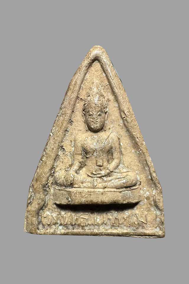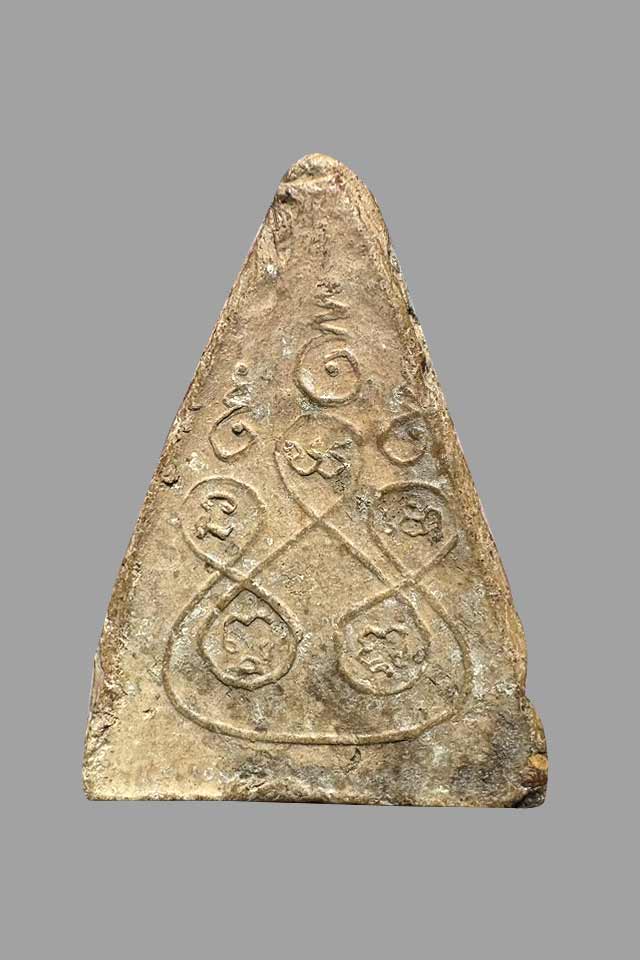 พระพุทธโคดม หลวงพ่อขอม วัดไผ่โรงวัว จ.สุพรรณบุรี ปี2505 พิมพ์สามเหลี่ยมหลังยันต์ เนื้อดิน