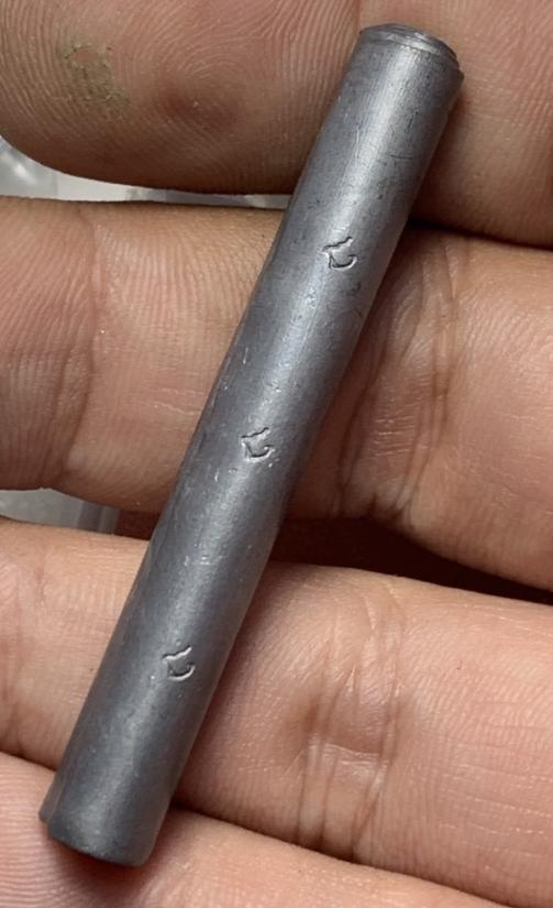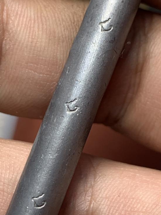 ตะกรุดเนื้อตะกั่ว ตอกโค๊ต 3 โค๊ต ไม่ทราบที่ครับ |