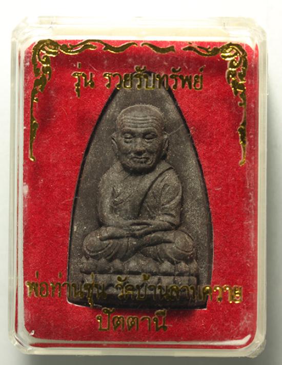หลวงพ่อทวด รุ่นรวยรับทรัพย์ เนื้อว่านคลุกรัก หลังฝังปรกและถุงเงินทอง พ่อท่านซุ่น วัดบ้านลานควาย จ.ปัตตานี ปี 2558 สวยหายาก กล่องเดิม ครับ
