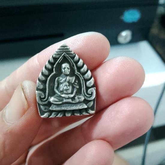 เหรียญหล่อเจ้าสัว เนื้อเงิน ฝังตะกรุด หลวงพ่ออุ้น วัดตาลกง เพชรบุรี