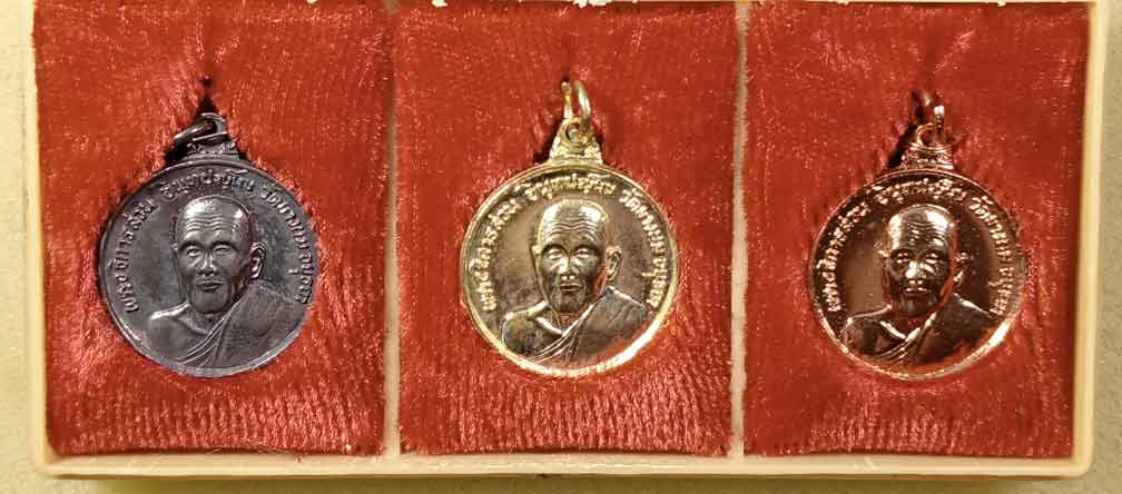 เหรียญหลวงพ่อนอ วัดกลาง ท่าเรือ อยุธยา + เหรียญชุด 3 เหรียญ รุ่นแรก พระอธิการสวน วัดยางนม อยุธยา ปี 22 |