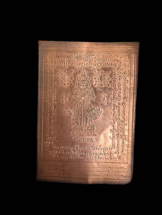 แผ่นท้าวเวสสุวรรณ เนื้อทองแดง ลงยันต์เต็มแผ่น (ไม่ทราบที่สร้าง)