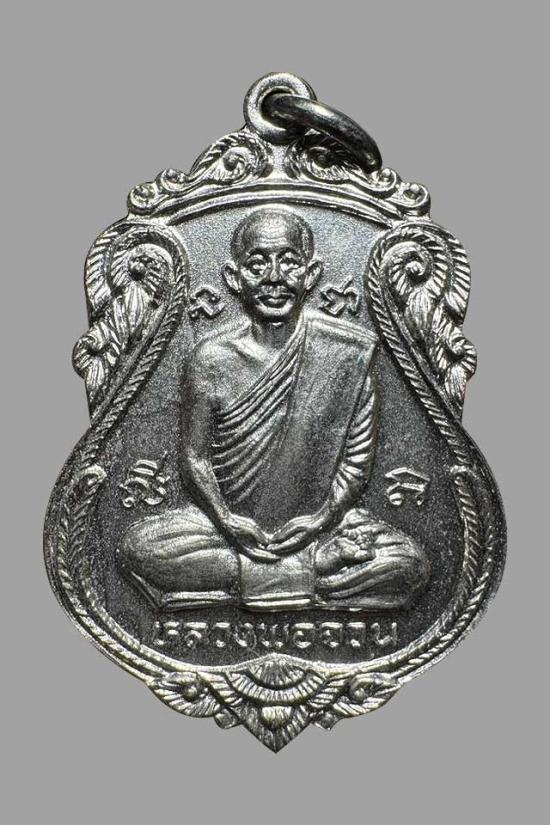 หลวงพ่อจวน วัดหนองสุ่ม เหรียญเสมาใหญ่ ปี18 เนื้ออัลปาก้า ที่ระลึกในงานผูกพัทธสีมาวัดหนองสุ่ม