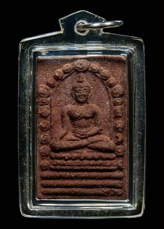 พระพุทธสิหิงค์หลังราหูทรงเครื่อง พิธีศาลหลักเมืองนครศรีฯ รุ่นแรก เนื้อแดง ปี 2530