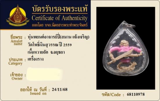 <<วัดใจ20บาท..หุ่นพยนต์อาจารย์ปี่ (สมาน แจ้งเจริญ) วัดโพธิ์เงินสุวรรณ จ.พระนครศรีอยุธยา เนื้อหวายถัก สร้างปี 2559 (บัตรรับรองนิตยสารพระท่าพระจันทร์) ตัวจริงเสียงจริง น่าบูชามากๆครับ>>