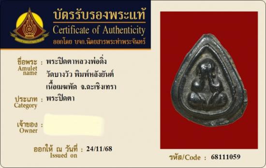 <<วัดใจ20บาท..พระปิดตาหลวงพ่อดิ่ง วัดบางวัว จ.ฉะเชิงเทรา เนื้อเมฆพัด พิมพ์หลังยันต์ สร้างปี 2480 (บัตรรับรองนิตยสารพระท่าพระจันทร์) สวยเดิมทุกประการ ตัวจริงเสียงจริง น่าบูชามากๆครับ>>