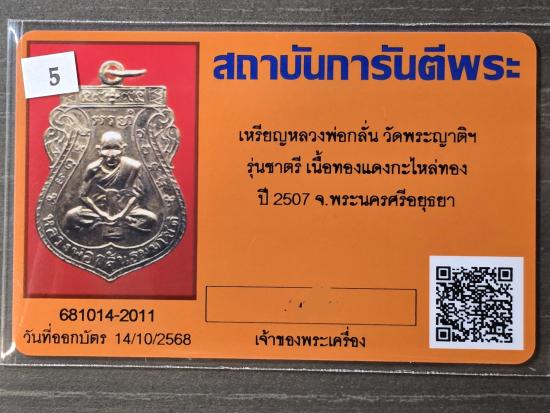 เหรียญหลวงพ่อกลั่น รุ่นชาตรี ซองเดิมจากวัดครับ แกะมาถ่ายรูปชัดๆสวยๆครับ พร้อมบัตรรับรอง