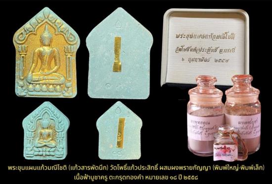 พระขุนแผนแก้วมณีโชติ (แก้วสารพัดนึก) วัดโพธิ์แก้วประสิทธิ์ ผสมผงพรายกัญญา (พิมพ์ใหญ่-พิมพ์เล็ก) เนื้อฟ้าบูชาครู ตะกรุดทองคำ หมายเลข 18 ปี 2558 เคาะเดียว