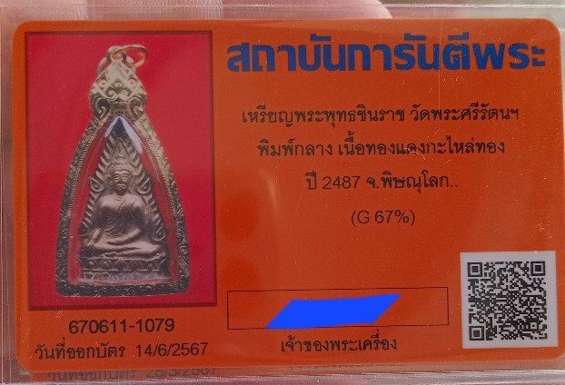 เหรียญพระพุทธชินราชปี 2487 (พิมพ์กลางกะไหล่ทอง) ***ประมูลเฉพาะพระ ไม่มีกรอบทองแล้วครับ***