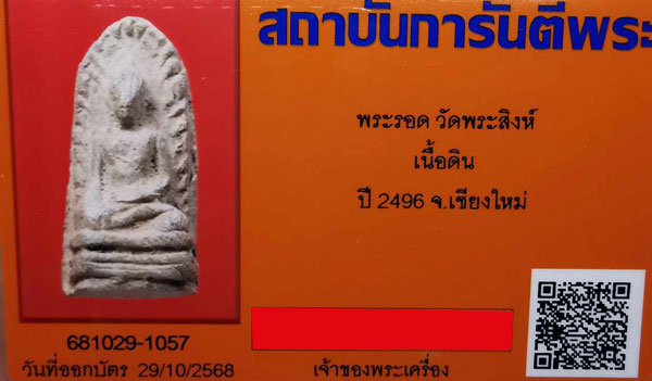 พระรอด วัดพระสิงห์ เนื้อดิน ปี2496 จ.เชียงใหม่ + บัตรG-pra พระสภาพสวยเดิม สภาพตามรูปทุกประการค่ะ