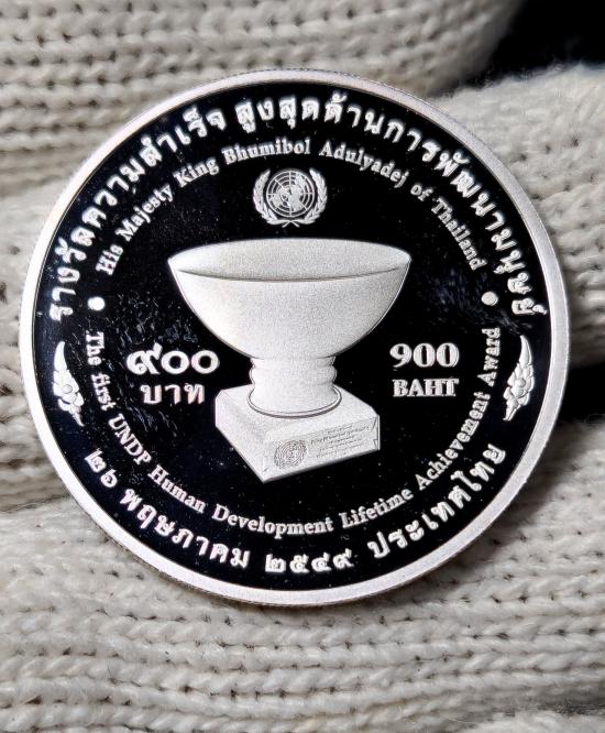 เหรียญรางวัลความสำเร็จสูงสุดด้านการพัฒนามนุษย์ ปี 2549 ร.9 ราคาหน้าเหรียญ 900.-บาท เนื้อเงินบริสุทธิ์ 99.9% น้ำหนัก 31.1 กรัม ขัดเงา พร้อมกล่องเดิมครบชุดตามรูป |