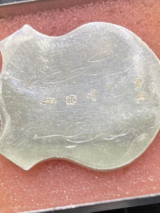 เหรียญโล่ห์พระพรหม หลวงพ่อชำนาญ นื้อเงินหน้าทองคำแท้ (ด้านหลังจาร )