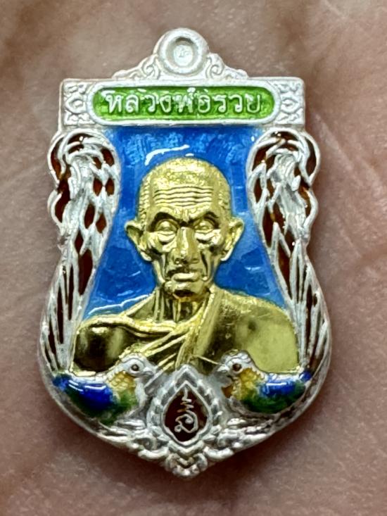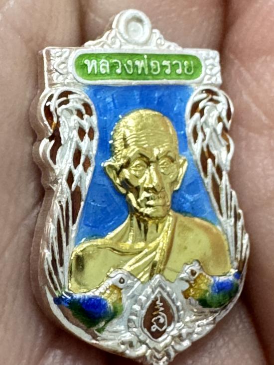 เหรียญหลวงพ่อรวย วัดตะโก อยุธยา รุ่นเสาร์ 5 รวยเมตตาบารมี เนื้อเงินลงยาหน้ากากทองคำแท้ ตอกโค๊ต ตอกหมายเลข
