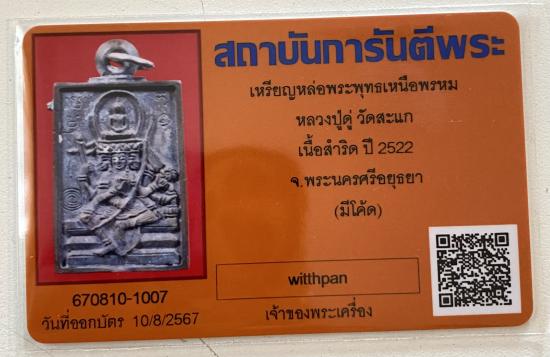 ชื่อพระเครื่อง เหรียญ หล่อพระพุทธเหนือพรหม รุ่นแรก ปี2522 หลวงปู่ดู่ วัดสะแก เนื้อโลหะผสม มีโค๊ด ปี2522 ซองเดิม ผิวเดิมๆ
