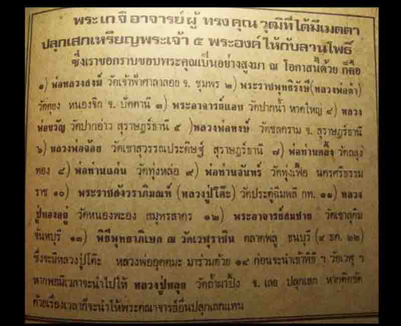 อ้างอิง : ข้อมูลจากนิตยสารพระเครื่องลานโพธิ์ ฉบับ ปี 2522