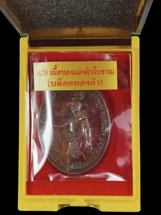 เหรียญพระเจ้าตากสินมหาราช หลวงพ่อทองสุข วัดหนองฆ้อ ระยอง เนื้อทองแดงผิวโบราณ(บล็อคทองคำ)สวยๆกล่องเดิมวัดใจ 100 แดงครับ |