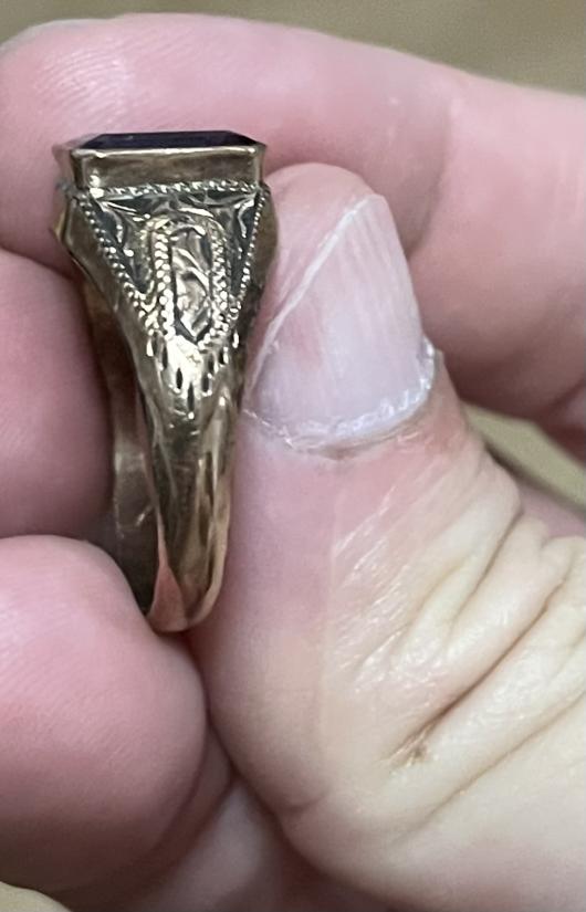 แหวนนากเก่า หัวพลอยแท้สีออกม่วงเก่าๆ(ตอกโค๊ต40%) แต่จางๆนำ้หนัก3.20 กรัม