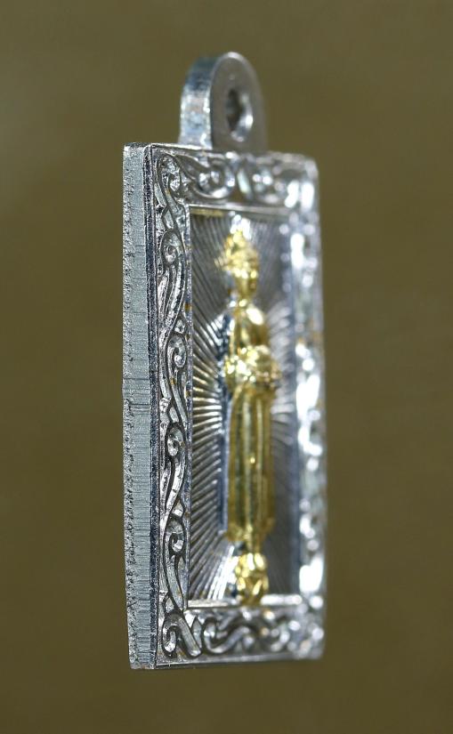 เหรียญแสตมป์ หลวงพ่อบ้านแหลม วัดเพชรสมุทร เนื้อเงินชุบทองคำขาว หน้ากากทอง