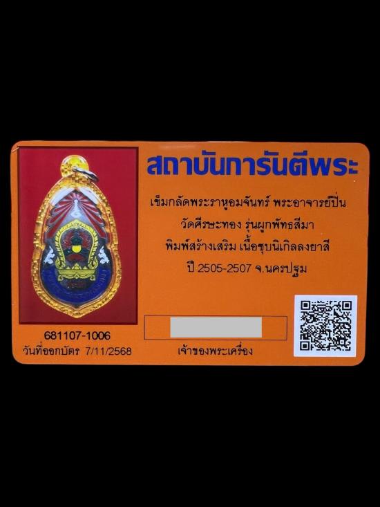 เข็มกลัดอาจารย์ปิ่น วัดศรีษะทอง จ.นครปฐม ปี2505 จารเต็มสูตร เข็มกลัดอาจารย์ปิ่น ท่านสร้างขึ้นในคราวพูกพัทธสีมาวัดศรีษะทอง เข็มกลัดอาจารย์ปิ่น มีการจัดสร้างในคราวเดียวกันกับเหรียญหลวงพ่อน้อย นาวารัตน์