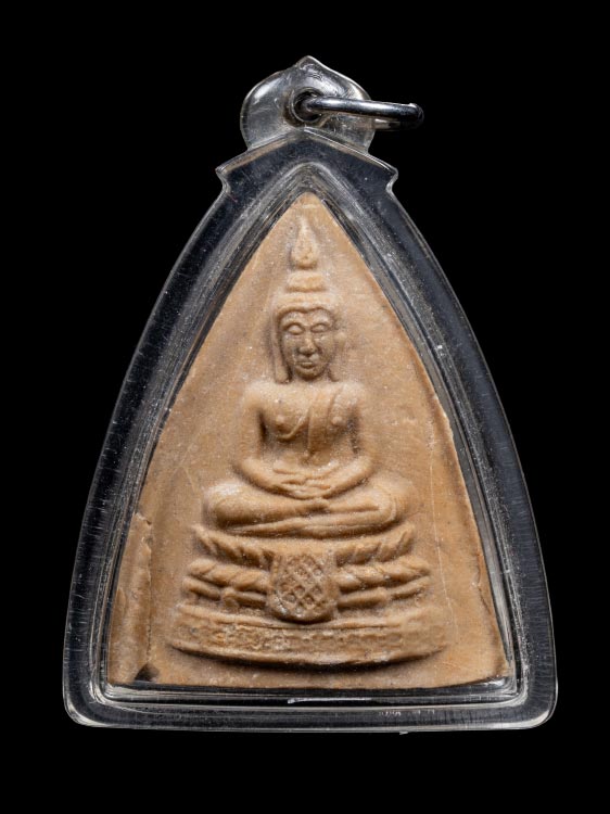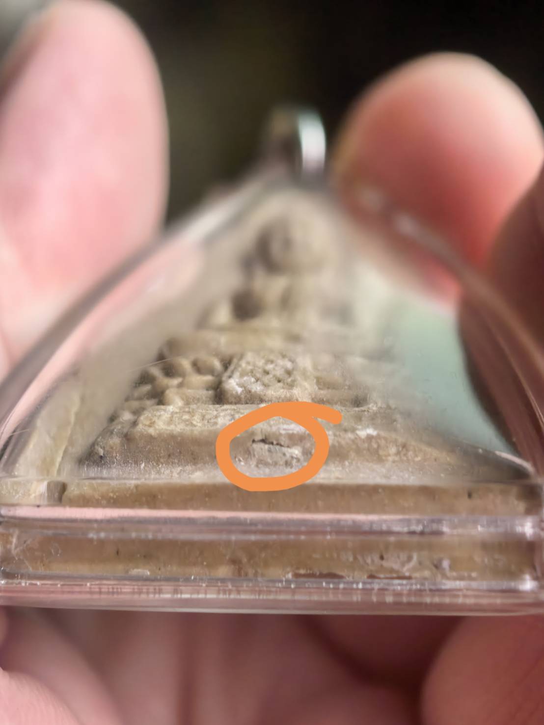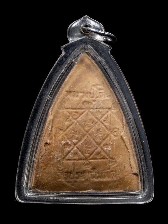 องค์นี้เป็นพิมพ์ใหญ่ เนื้อเกสร ฝังตระกุตเงิน 1 ดอก จัดสร้างปี 2521 ด้านหน้าเป็นพระประธาน ด้านหลังยันต์ตรีนิสิงเห