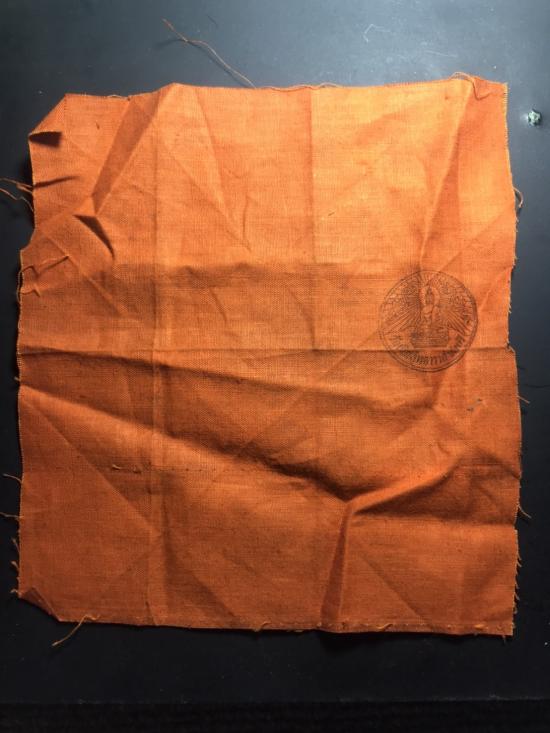 ผ้ายันต์มงกุฏพระเจ้า ปั้มตรายาง หลวงพ่อวิเชียร วัดเนินสุทธาวาส ชลบุรี หมายเลข9904 |