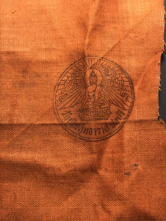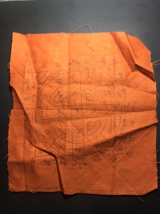 ผ้ายันต์มงกุฏพระเจ้า ปั้มตรายาง หลวงพ่อวิเชียร วัดเนินสุทธาวาส ชลบุรี หมายเลข 9904 |