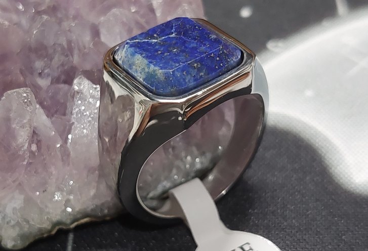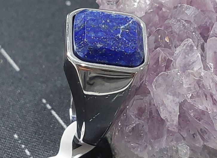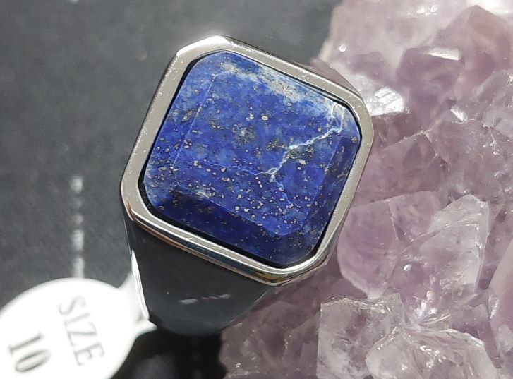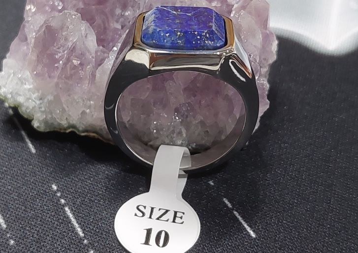แหวนหัวลาพิสลาซูลี ตัวเรือนแหวนเป็นสแตนเลสขัดเงาแข็งแรงทนทาน ขนาดแหวนเบอร์10 |