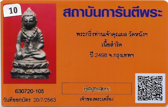พร้อมบัตรรับรองจาก การันตีพระ
