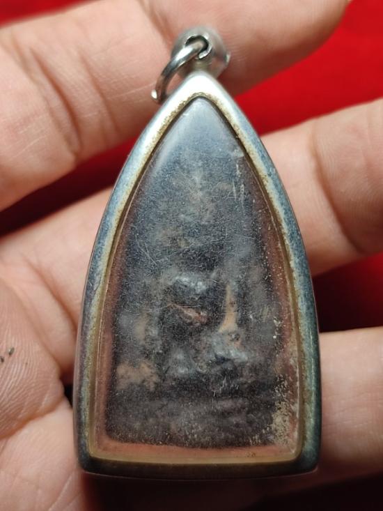 พระพุทธชินราชเนื้อครั่ง เก่าไม่ทราบที่ ใส่ตลับสแตนเลสเก่า สูง 4 cm