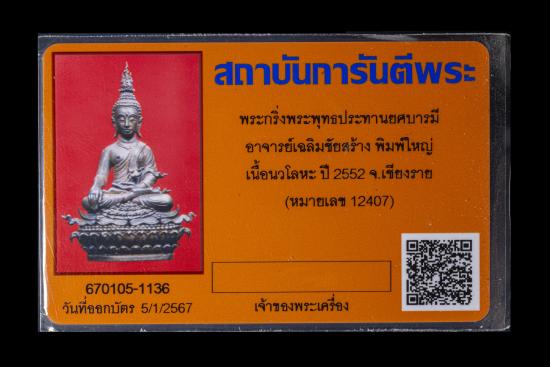 พระกริ่งพุทธประทานยศบารมี เนื้อนวะโลหะผิวสวยเดิม พิมพ์ใหญ่หน้าตัก 2 ชม สูงประมาณ 4 ชม. เนื้อนี้สร้างจำนวน 20000องค์ เพื่อแจกตำรวจ พิธีใหญ่ 9 ครั้ง โดยเกจิย์คณาจารย์หลาย รูป ปี52 ออกแบบและควบคุมโดย อ.เฉลิมชัย โมษิตพิพัฒน์ศิลปินแห่งชาติสาขาจิตรกรรม