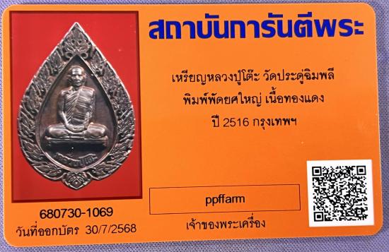 เหรียญหลวงปู่โต๊ะ วัดประดู่ฉิมพลี พิมพ์พัดยศใหญ่ เนื้อทองแดง ปี 2516 จ.กรุงเทพ สภาพสวย