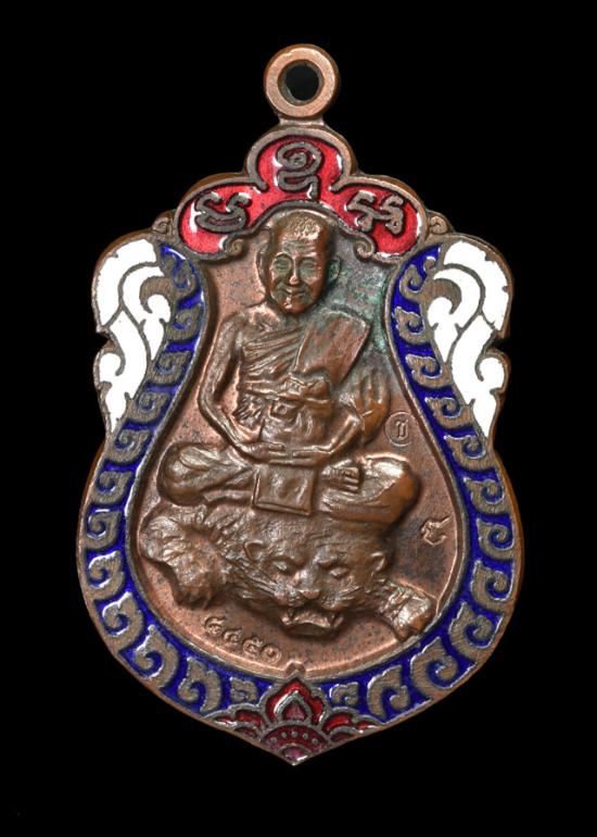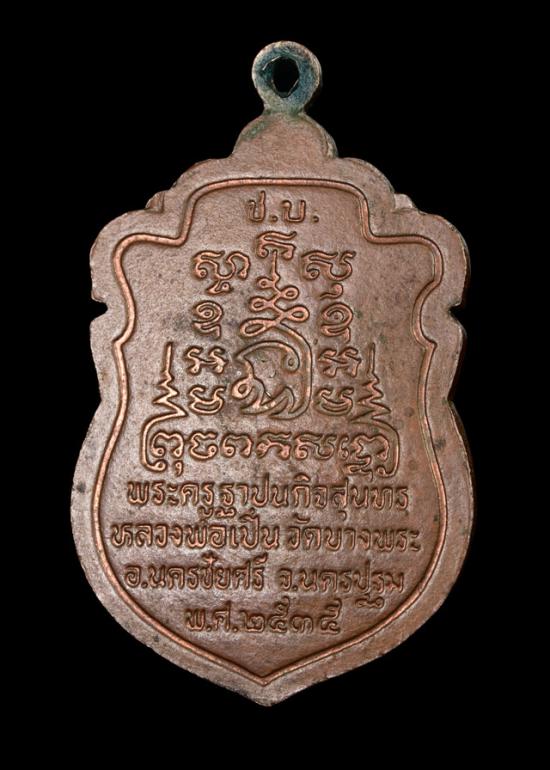 เหรียญเสมาเนื้อทองแดงลงยาหลวงพ่อเปิ่นวัดบางพระปี 2535