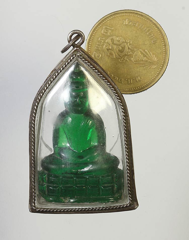 วัดใจ**พระแก้วมรกต หลวงพ่อเจียง วัดเจริญสุขาราม เลี่ยมกรอบเงินเก่า.....ตามสภาพครับ