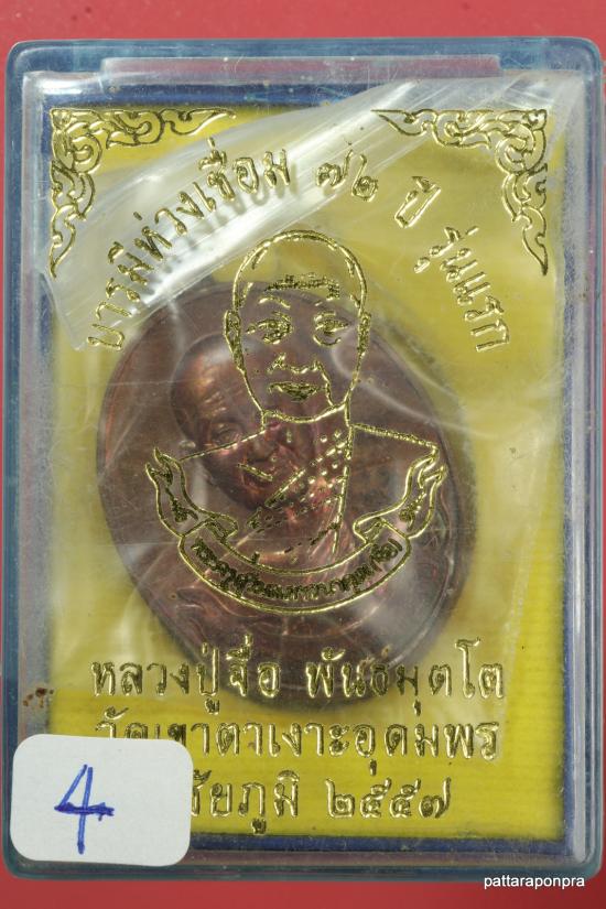 เหรียญห่วงเชื่อมหลวงปู่จื่อ รุ่นแรก ปี 2557 เนื้อทองทองแดง ตอกแจก หมายเลข 4 |