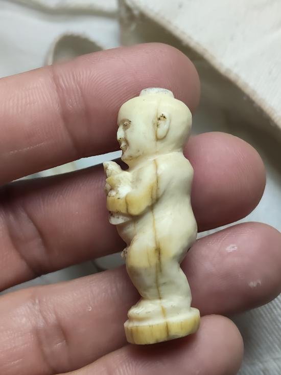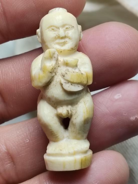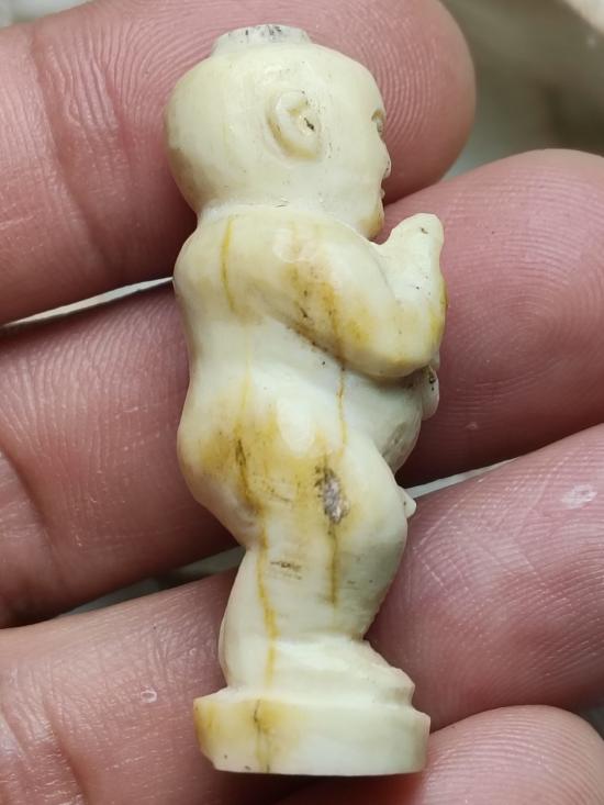 กุมารทองกวัก ถือถุงเงินถุงทอง แกะมือเก่า ไม่ทราบเนื้อ น่าจะเป็น กระดูกหรือกราม ไม่ทราบที่ |