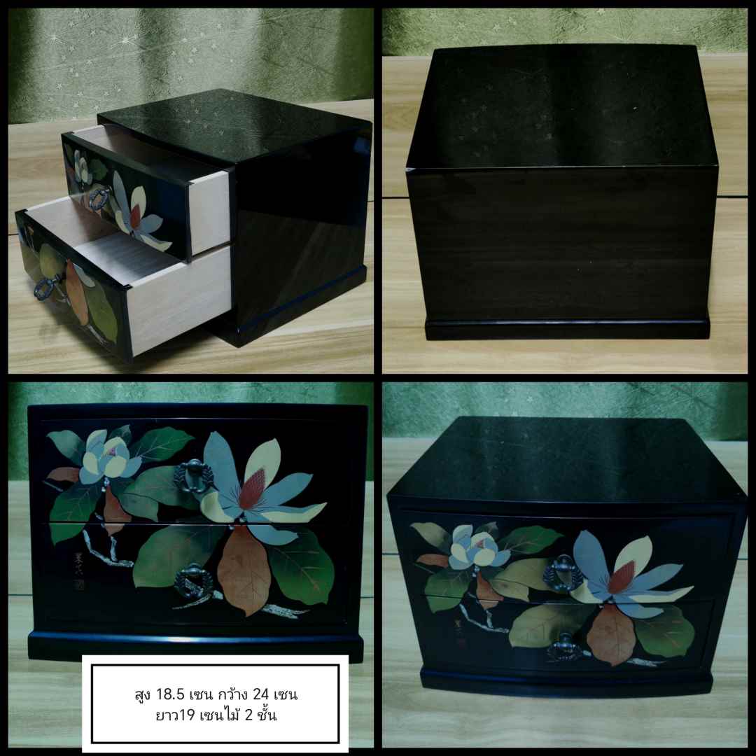 ชั้น หลังที่ 1 สูง 18.5 เซนติเมตร กว้าง 24 เซนติเมตร ยาว19 เซนติดเมตร ไม้ 2 ชั้น