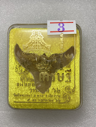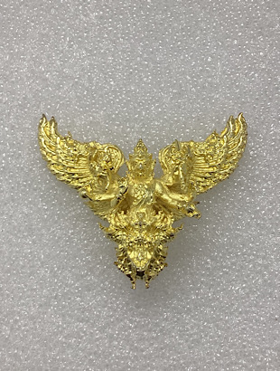 พญาครุฑมังรายศาสตร์ เศรษฐีอนันตทรัพย์ พระอาจารย์วิรุต วัดสันมะเหม้า จ.เชียงราย เนื้อสัมฤทธิ์ชุบทองขัดเงาบางส่วน พิมพ์เล็ก สูง 3 ซ.ม. กล่องเดิม |