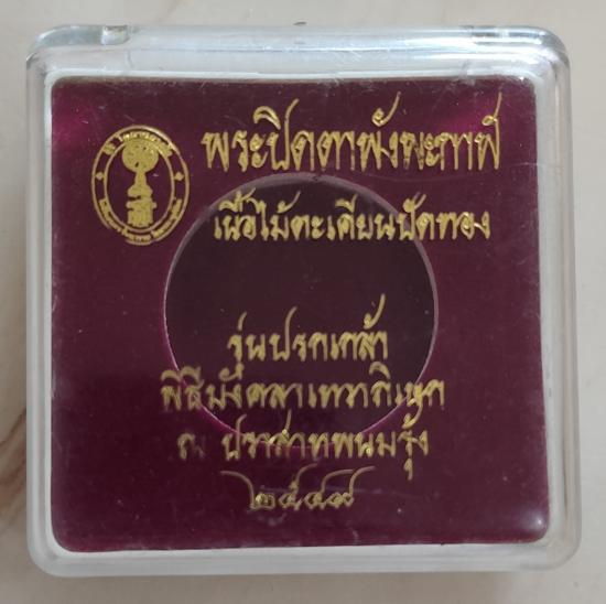 พระปิดตาพังพะกาฬ รุ่นปรกเกล้าปี49 หลวงปู่หงษ์ หลวงปู่ธรรมรังษี หลวงปู่ผาด หลวงตาคีย์ ร่วมปลุกเสก เนื้อผงไม้ตะเคียนทองปัดทอง ตอกโค้ต พร้อมกล่องเดิม (ใส่ตลับอิตาลีไม่ผ่านการใช้)