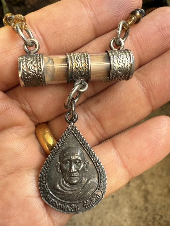 เหรียญหลวงพ่อเงิน วัดถ้ำน้ำ ราชบุรี เนื้อกะไหล่เงิน พร้อมว่านหุ้มด้วยเงิน พร้อมสร้อยลูกปัดสวยงาม