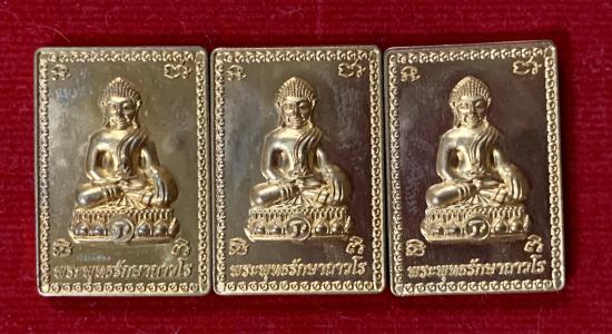 เหรียญพระพุทธรักษาถาวโร พ่อท่านผอม วัดไทรขาม จ.นครศรีธรรมราช เนื้อทองสัตตะ 3 เหรียญ