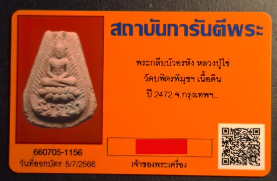 พระผงกลีบบัว อรหัง หลวงปู่ไข่ วัดเชิงเลน (บพิตรพิมุข) เนื้อดิน ปี 2472 จ.กรุงเทพ + บัตรรับรอง G-Pra