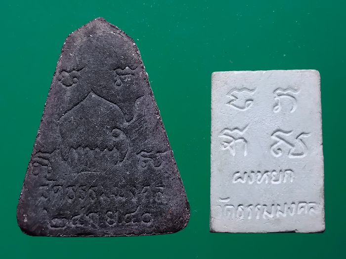 140 .- วัดใจ.@@ เหมา 2 องค์> " พระผงนิลกาฬ หลังยันต์ นะมีเขี้ยว ซึ่งเป็นยันต์หลวงปู่มั่น + พระผงหยก " หลวงพ่อวิริยังค์ วัดธรรมมงคล ค่ะ @@ |